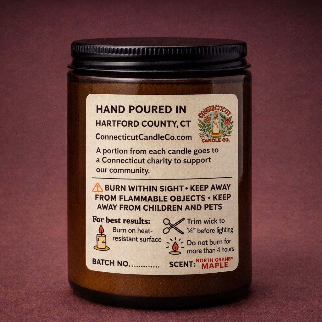 Inspired by the quiet backroads and maple lined hills of North Granby, this candle blends warm maple syrup, baked apples, and a smooth hint of bourbon. It's the scent of cool fall evenings, farmhouse kitchens, and the kind of small-town comfort that feels uniquely Connecticut.