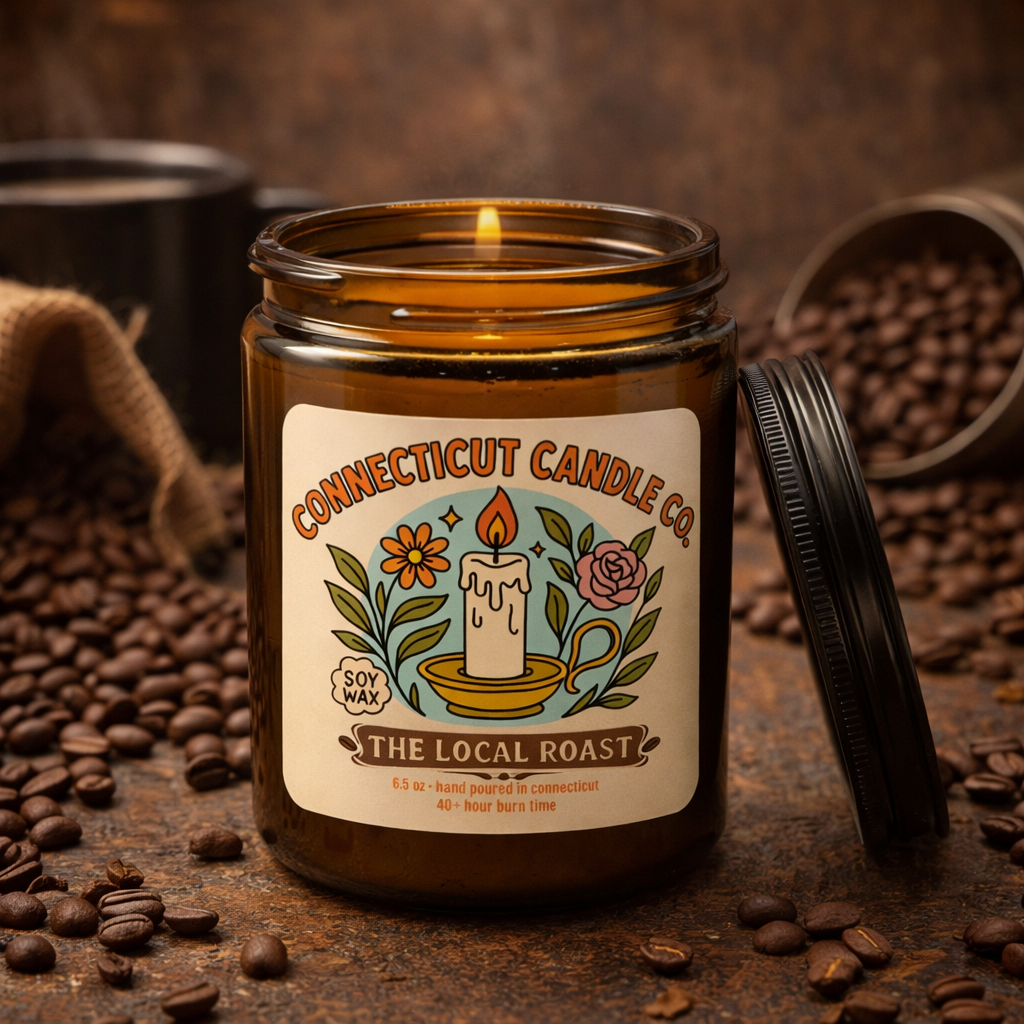 Inspired by Connecticut's small-town cafés and the amazing people who keep them alive, The Local Roast captures the comforting aroma of the freshly ground beans, warm roasted coffee, and a hint of sweet bakery air. It's the scent of early mornings, handwritten menus, and supporting the places that make our communities feel like home.